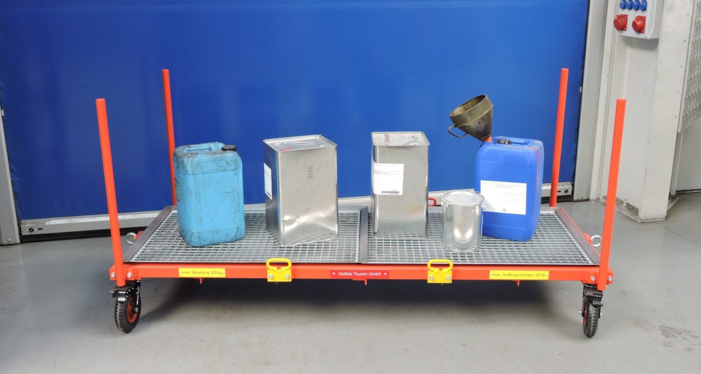 Fahrbare Abtropfwägen für Restgebinde und Tränkteile